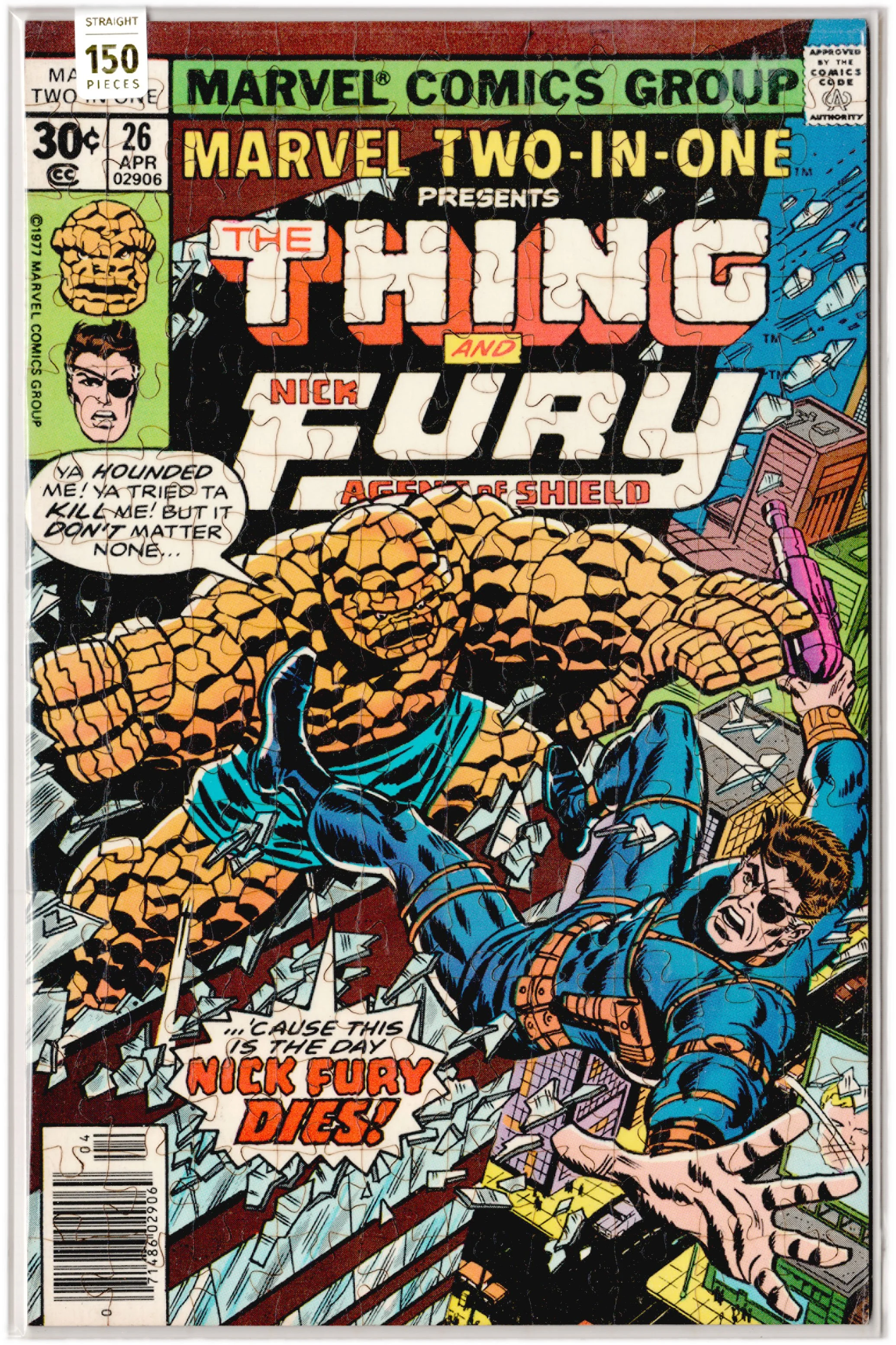 You’re looking at a Puzzled Comic, a wooden jigsaw puzzle crafted with a genuine comic book cover. The image on the puzzle isn’t a reproduction, it’s the actual cover of a comic book. They’re utterly unique and outrageously original!